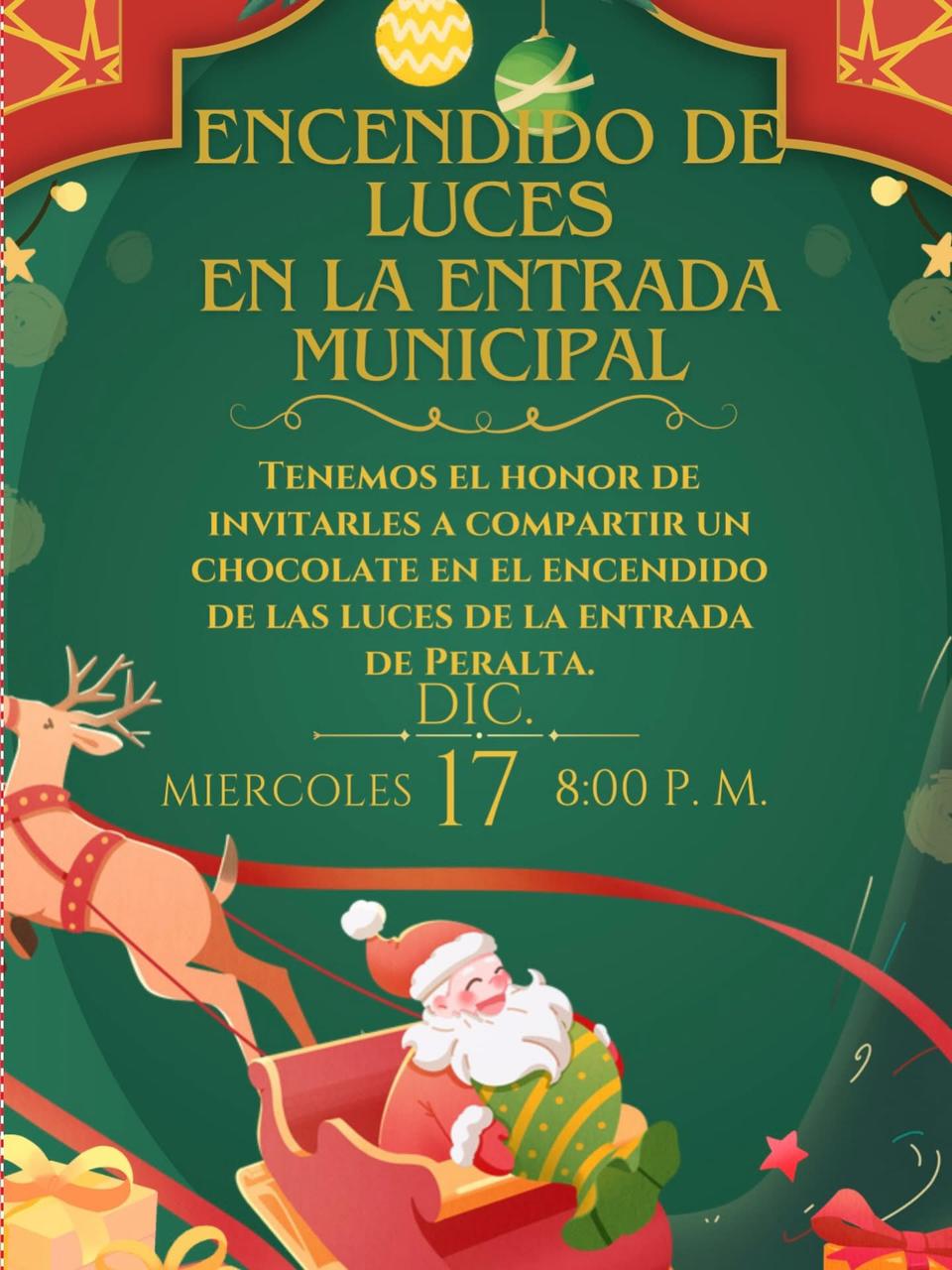 El Ayuntamiento Municipal invita cordialmente a toda la ciudadanía al encendido de las luces de la entrada municipal, un acto especial que simboliza unión y esperanza para nuestra comunidad. Les esperamos para compartir juntos este momento significativo y dar la bienvenida a una nueva etapa de iluminación y embellecimiento de nuestro municipio.